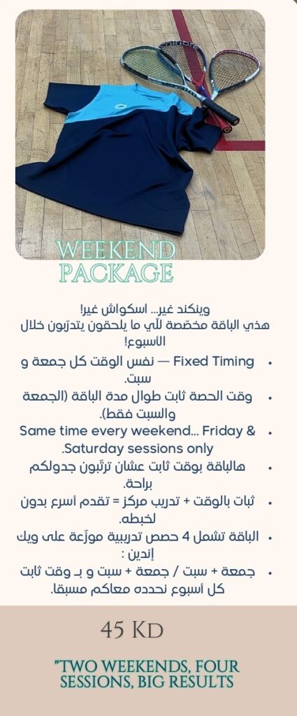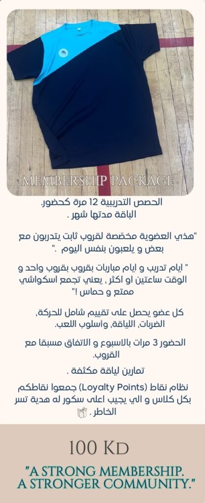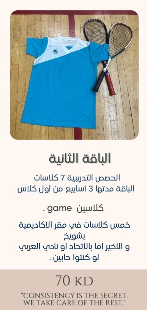 أكاديمية متخصصة بتعليم فنون و رياضة الإسكواش من مستوى مبتدئ إلى الهاوي و المحترف .